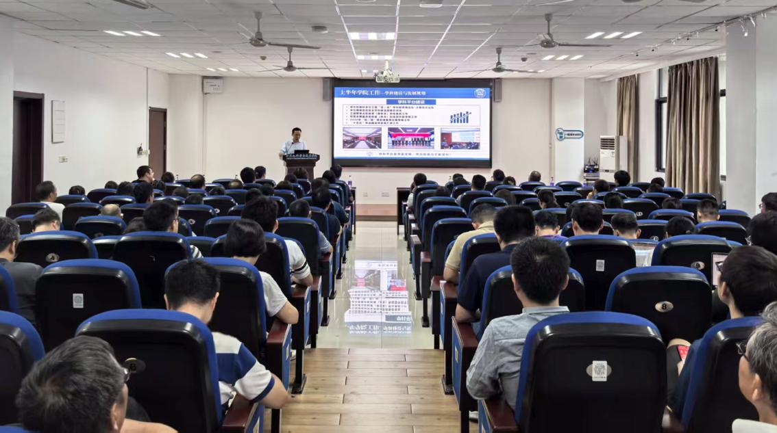黄圣君向大会作了上半年学院工作报告,系统总结了学院2025年上半年在学科建设、发展规划、师资队伍、人才培养、科学研究、国际合作等方面取得的显著成绩,系统分析了学院发展面临的机遇与挑战,并结合学院“十年行动计划”对下半年重点工作进行了部署。他强调,全院教师要紧紧围绕国家战略需求和学科发展前沿,强化有组织科研,推动学院各项工作实现新突破,为学校建成航空航天民航特色鲜明的世界一流大学的宏伟目标作出更大贡献。