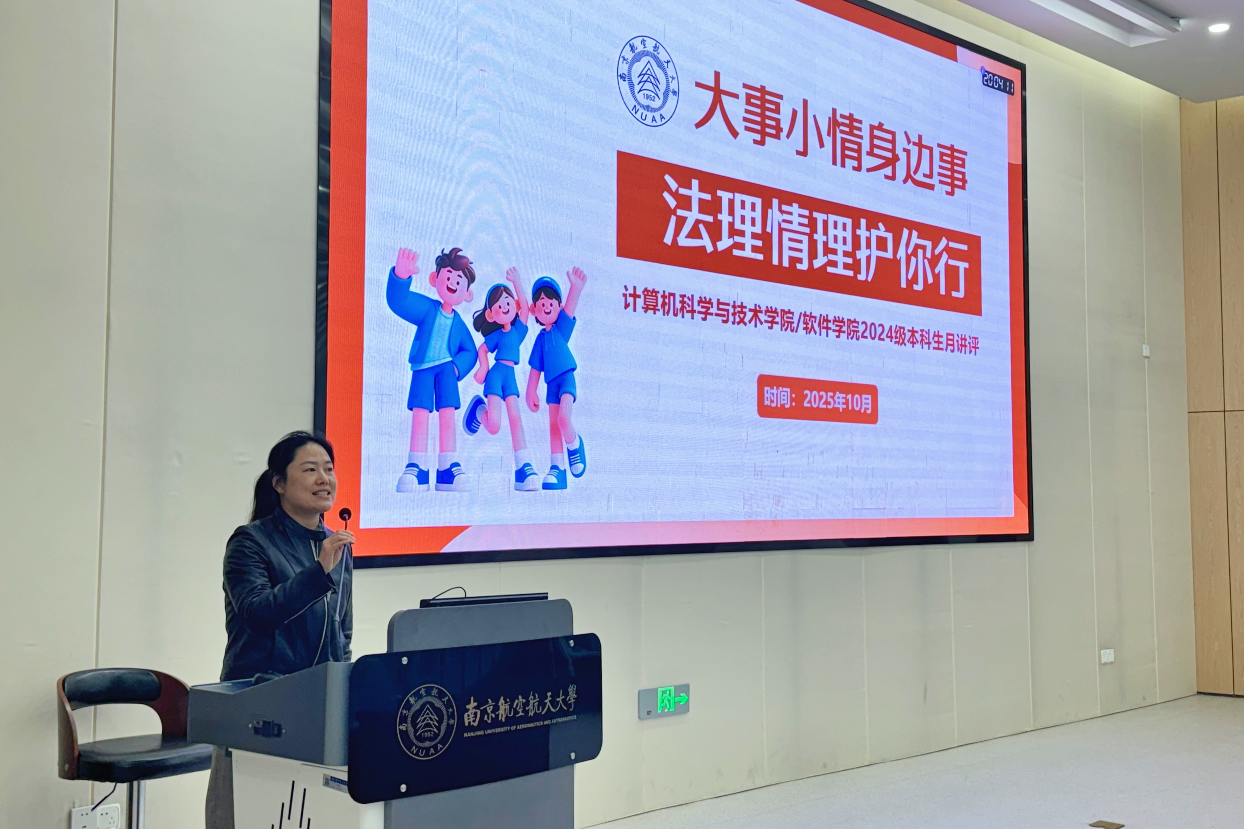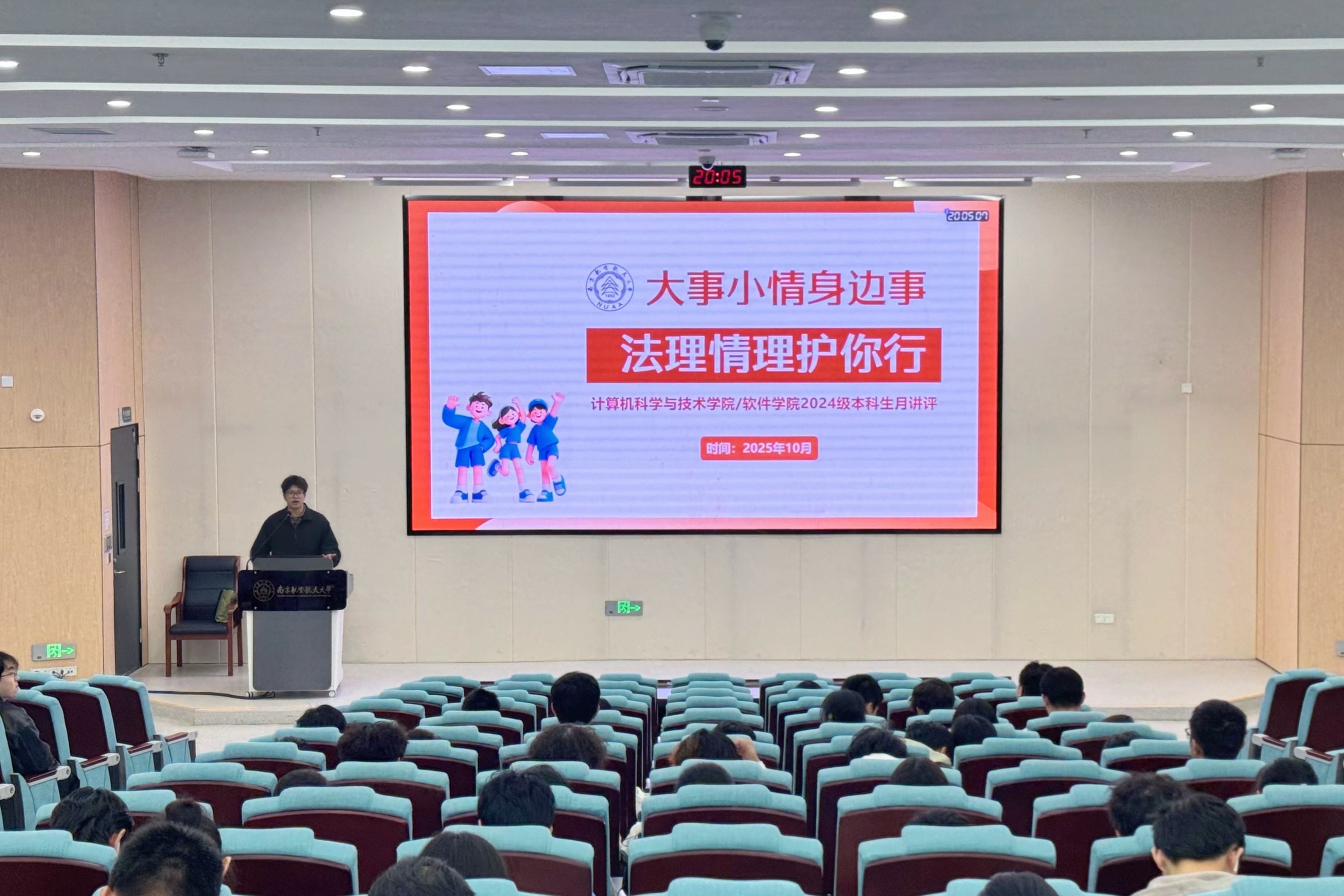 10月30日,“大事小情身边事,法理情理护你行”主题月讲评在天目湖校区牧星楼T2110报告厅顺利举行,计算机学院党委副书记夏冰、本科生辅导员杨耀勇、全体2024级本科生参与。