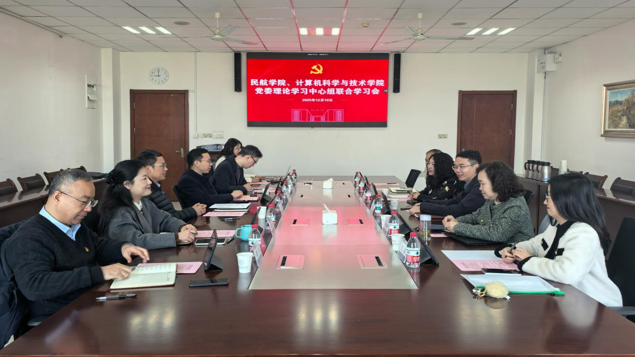12月18日,学院党委与民航学院党委召开党委理论学习中心组联合学习会,围绕“坚持高质量发展,因地制宜发展新质生产力”主题开展学习研讨,共同谋划“十五五”期间重点合作方向。计算机科学与技术学院党委书记王中叶主持会议,两学院党委理论学习中心组成员参加学习。