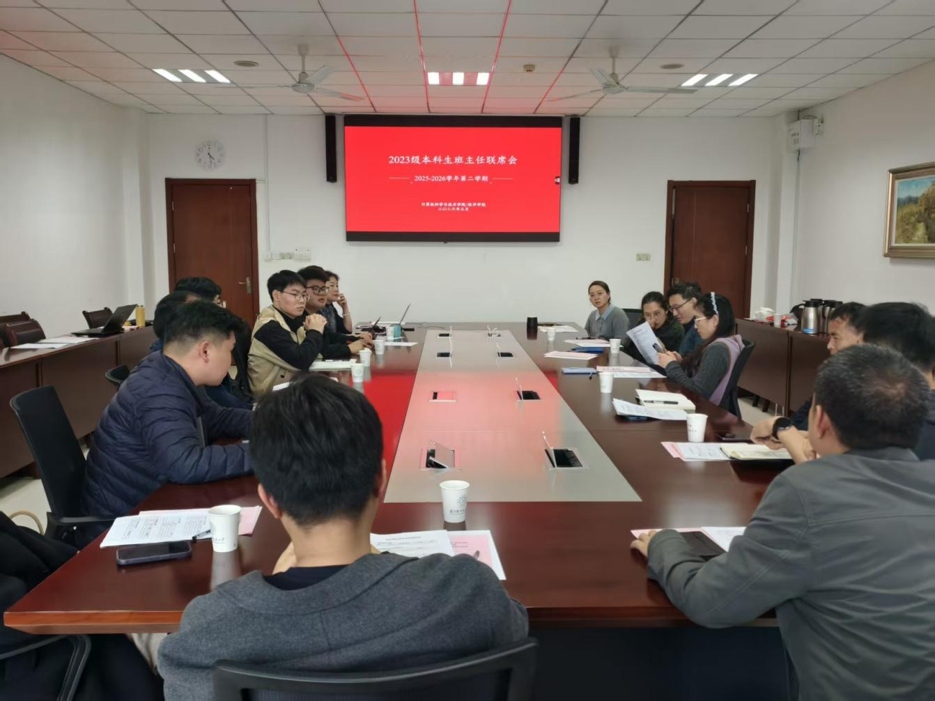 为精准落实不同年级学生管理服务要求,抓实抓细高年级学生培养工作,3月26日,计算机科学与技术学院先后组织召开2022级、2023级班主任工作会议。学院党委副书记夏冰、院长助理朱琨、教学办主任林卉,2022级辅导员云涛、2023级辅导员侯一飞及两个年级全体班主任参会,会议均由林卉主持。